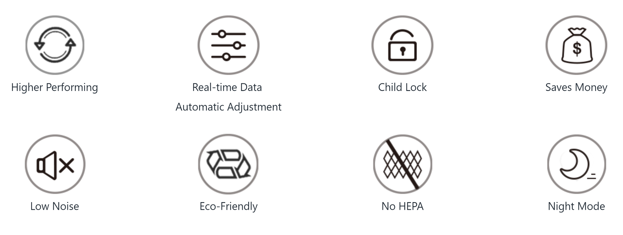 - Continously monitors your air quality and adjusts based on your room’s air quality level.