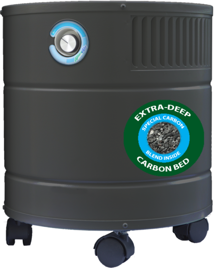 The carbon filter featured in the AirMedic Pro 4 DX Vocarb is the heaviest and thickest carbon filter in the Pro 4 series. This enables the AirMedic Pro 4 DX Vocarb to tackle very heavy concentrations of airborne chemicals, odors and volatile organic chemicals. The extra deep-bed (DX) Vocarb blend carbon filter provides enhanced adsorption of tough chemicals like formaldehyde and benzene that are difficult to trap. This thicker, heavier carbon filters also lasts longer than the D models, as there is more carbon available to saturate with chemicals.