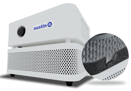- This sleek and stylish air purifier provides you with a constant stream of purified air. With whisper-quiet operation, the Austin “it” won’t disrupt your work or relaxation time!