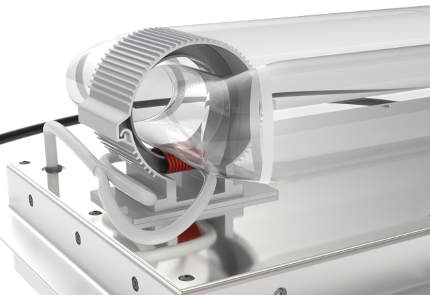 The Germicidal Blade 300W Commercial In Duct UV-C Lamp Air Cleaning System is designed to fit seamlessly within a new or existing HVAC system to sanitize the air as it flows through any size facility with 500 CFM to 7500 CFM capacity per unit! The Blade UV-C HVAC virus, germ and bacteria killing air purification unit offers complete facility indoor air quality improvement solution with easy scalable installation of multiple units to meet virtually any airflow level in returns, supply or make up air ducts and covering a wide range of temperatures from -25°C to +100°C. The duct mounted antiviral, antimicrobial and antibacterial UV light air treatment systems are quickly becoming the new standard for germicidal indoor air sanitation as they provide whole building air purification with overall much lower cost than buying multiple stand-alone UV air cleaning machines that are designed to protect only specific spaces and rooms.