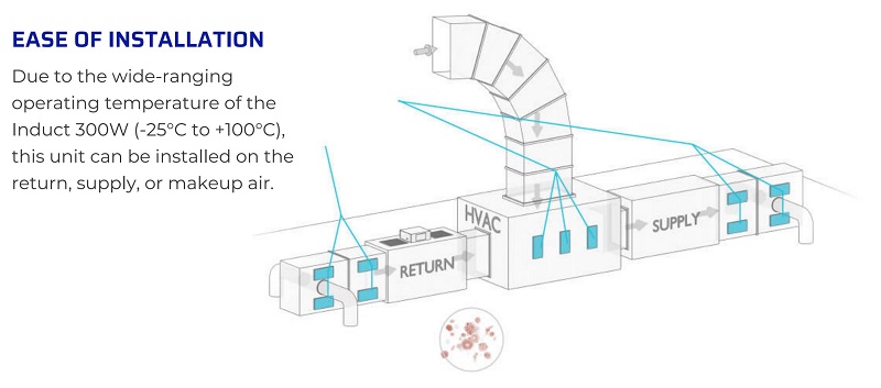 - Commercial High Energy 300 Watt Duct Mounted UV-C Air Purifier System