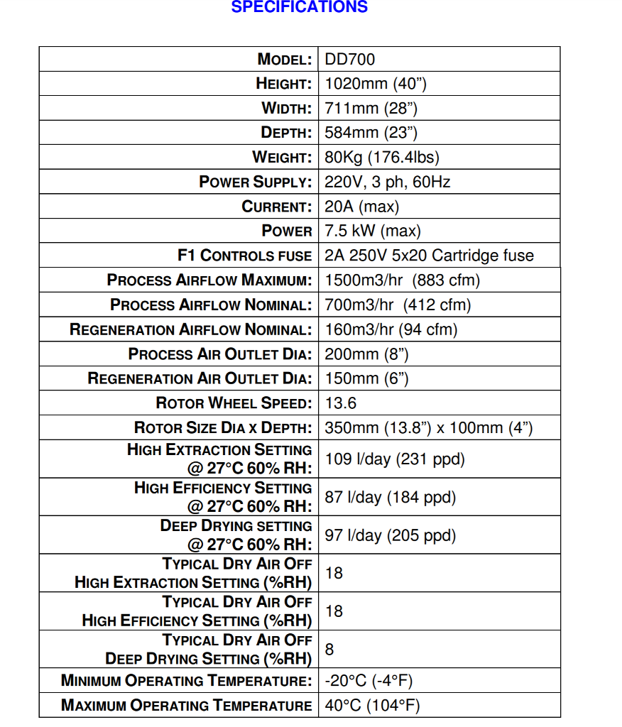 A Powerful Top-Rated Portable Industrial Desiccant Room Dehumidifier with Up to 231 Pints Per Day of Quiet Moisture Elimination and Humidity Removal, 410 CFM, Over 12,000 Cubic Foot Coverage, 460 Volt 3 Phase Power, and Duct Mount Capability. This Top-Rated, Powerful and Affordable Humidity Extractor Machine is Great for Large Home Air Conditioning Systems, Spas, Commercial Buildings, Workshops, Remediation, Medical Facilities, and all other Commercial Moisture Removal Needs. The EBAC DD700 Portable Dehumidifier Unit, is on Sale at our Moisture Elimination and Humidity Extraction Store at the Best Possible Cheap Discount Price with Free Shipping.