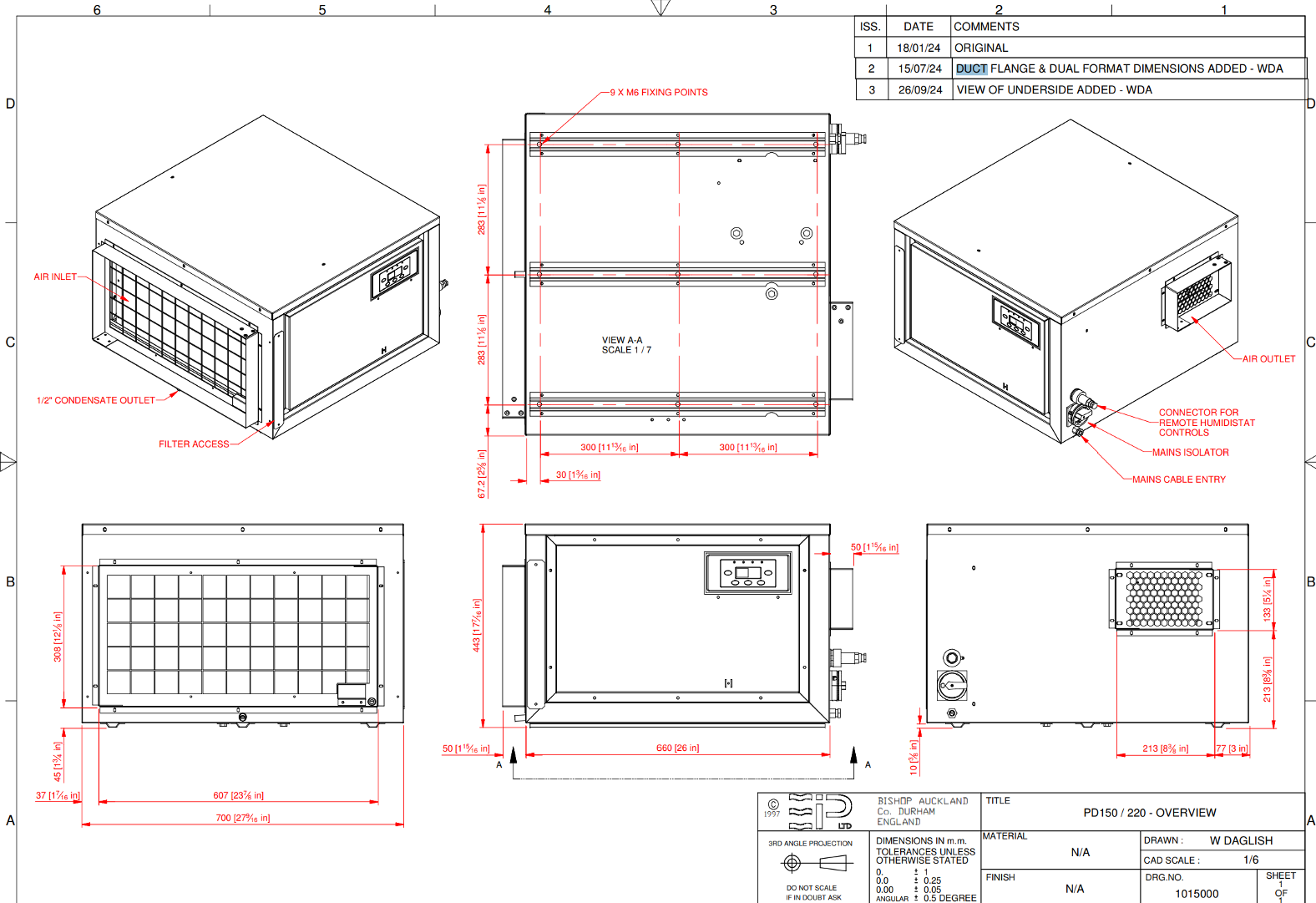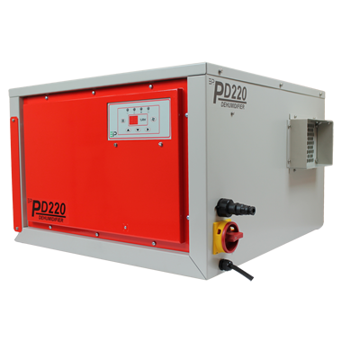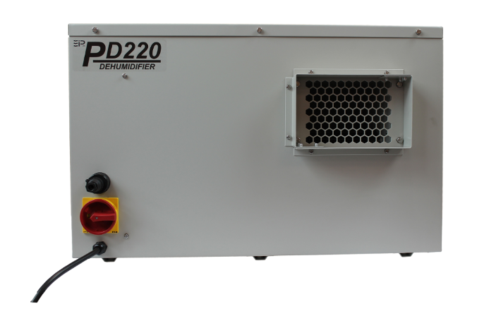 The PD dehumidifiers are all supplied with an internal humidistat as standard, and will operate as a stand alone portable unit, or installed into a ducted HVAC system. A remote Interface is available allowing connection to either a remote humidistat, which has voltage free contacts, or the EIPL remote touch panel which incorporates an internal humidity sensor and also facility for an external humidity sensor. This panel also provides local indication of the remote dehumidifiers status & operation. Adjustable control humidistat to maintain proper humidity levels. A convenient drain point for condensate collection of hose attachment, EIP’s unique temperature sensitive, “Reverse Cycle” defrosting feature which automatically melts away frost buildup providing effective operation at low ambient temperatures, Quite, 2 speed fan, Self-contained for quick and easy installation – No duct work required, Can be ducted if desired, Sturdy military-type carrying handles, Totally enclosed coils in an epoxy-coated, heavy gauge steel case. Order your PD220-D moisture removing machine at our top-rated indoor environmental control products store, at the best possible cheap discount online sales price!