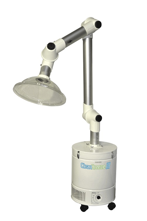 The Electrocorp Clean Breeze III D Vocarb industrial grade air filtration machine is also used in dental offices, laboratory work areas, workshops and other applications where area-specific or source capture fume extraction and dust removal is a must. Position the air purification unit directly over almost any work area for consistent air pollutant removal so you and others don’t breathe them in. The powerful Clean Breeze II Vocarb particle remover and odor eater is great for beauty salons as well; with the 730 CFM motor option, this unit provides excellent removal of smoke generated during keratin smoothing, or Brazilian blowout treatments. With the D Vocarb carbon fume extracting air scrubber, this unit is better suited where heavier chemical concentrations are present, stronger odors, more chemicals being used, etc.