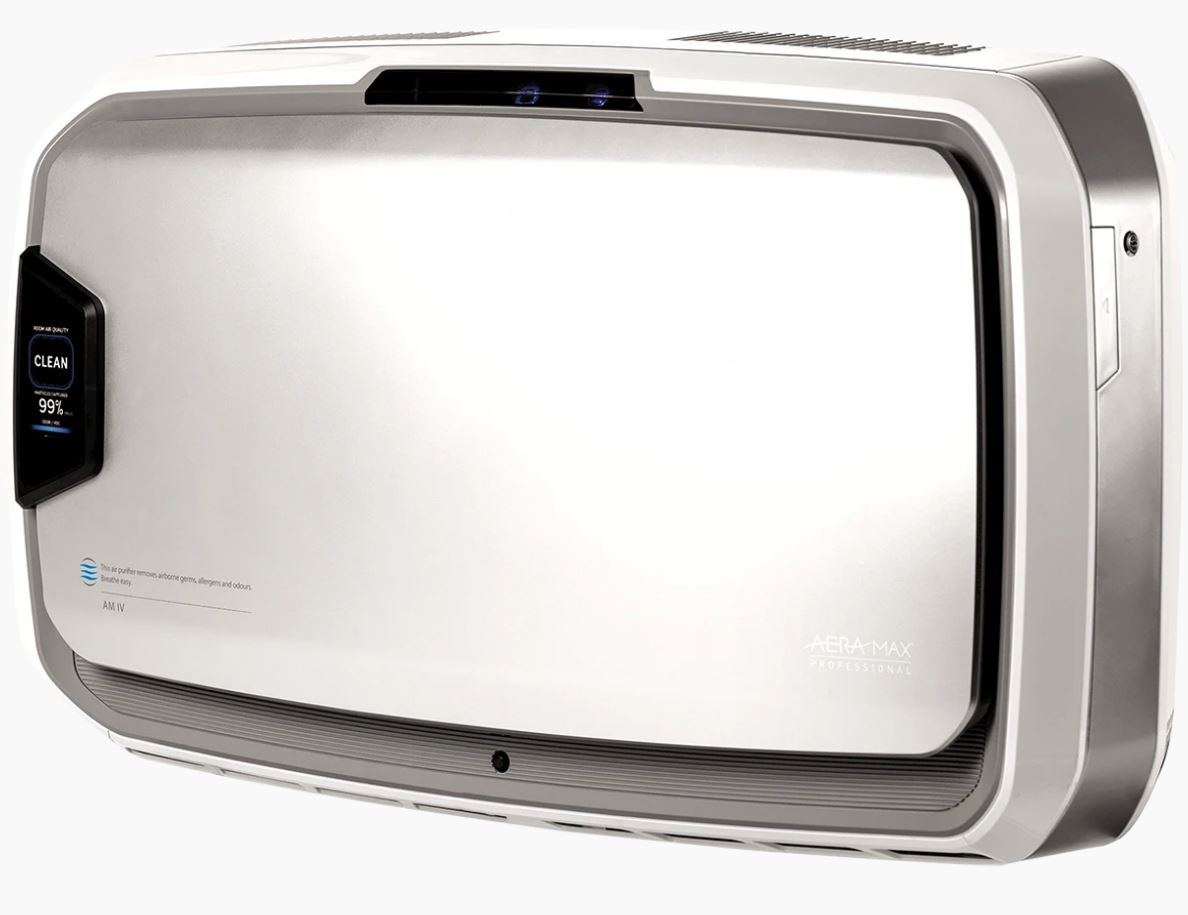 Independently tested and verified for effectiveness against airborne irritants and viruses including Human Coronavirus 229E, the AeraMax PRO AM4 PC Wall Mount Air Sanitizer delivers commercial-grade air cleaning to rooms as large as 1,100 square feet with up to 3 air changes per hour. This dust removing and fume extracting air purifier hard wires to existing power in your wall for a clean, neat look on the wall with no visible power cords, etc. Using four stages of filtration, it delivers a performance other germicidal air cleaners in its class can’t match. Its first stage of pre-filtration captures large particles like dust and dander. The activated carbon scrubber removes odors, fumes, and volatile organic compounds (VOCs) found in your indoor air. True HEPA Filtration then removes 99.97% of airborne contaminants as small as 0.3 microns while its antimicrobial disinfectant coating prevents the growth of bacteria, germs and viruses in the filter. Finally, AeraMax’s Plasma True germicidal bipolar ionizer technology creates charged positive and negative ions that kills germs, virus and bacteria and cause airborne pollutants to stick together making them too heavy to remain in the air, which makes them fall out of the breathing zone and more easily trapped by the filtration system. This is great for removing smoke, heavy particles and other indoor airborne pollutants. All together, the compact and powerful AeraMax PRO AM4S PC air purifier’s comprehensive filtration system provides one the best commercial HEPA indoor air filter systems for sale online today.
