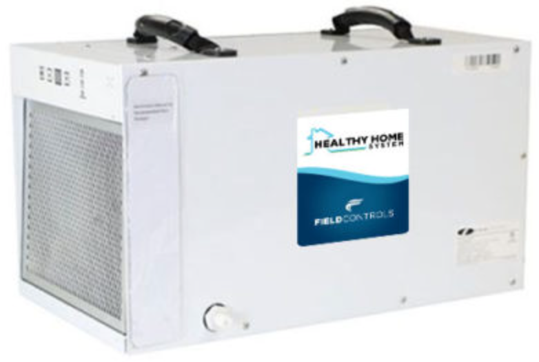 Field Controls whole house dehumidifiers feature an integrated dehumidistat to monitor the conditioned space and be able to set and maintain your desired humidity. When the relative humidity rises above the selected setpoint, the moisture eliminator will energize. Air is then drawn across an evaporator coil, which is cooler than the dew point air. This causes moisture to condense out of the air. The air is then reheated through the condenser coil and distributed back into the room. The FC-85DH moisture remover works by condensing moisture from the air as it comes through, robbing mold and bacteria of the moisture they need to grow. The FC-85DH residential dehumidifier will remove up to 85 pints of moisture from the air per day. If you’re not sure how much moisture you need to remove to achieve your desired humidity, give us a call toll-free at 800-701-2513 and we’ll be happy to calculate it for you 🙂