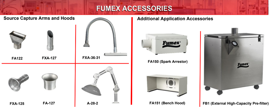 Fumex manufactures a complete line of laser cutter particle collector and fume extractor systems specifically designed for industrial processes that generate laser fumes. These industrial grade indoor laser fume extractors are permanent or portable, cost efficient and reliable with a 2-year warranty, and they’re all American Made. They are suitable for most environments including: commercial/industrial locations, workshops, offices, schools, universities, and museums. These powerful industrial extraction systems can be permanently mounted or portable, cost efficient, easy to integrate, and come with a reliable 2 year warranty.