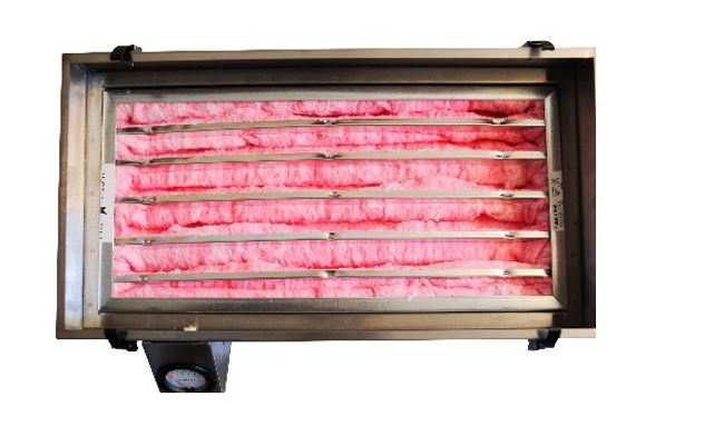 The bag filter is constructed with 100% synthetic media. The filter is constructed with ultra-fine fiberglass media. Individual pockets are formed by span stitching down the length of the pockets. Each pocket is fastened to the next with a “L” shaped support ribs. The entire assembly is encased in a galvanized steel frame to prevent racking and bypass. The filters are rated Class 2 under UL stnd 900 and withstand temperatures up to 180 degrees Fahrenheit. MERV 13 – Efficiency.