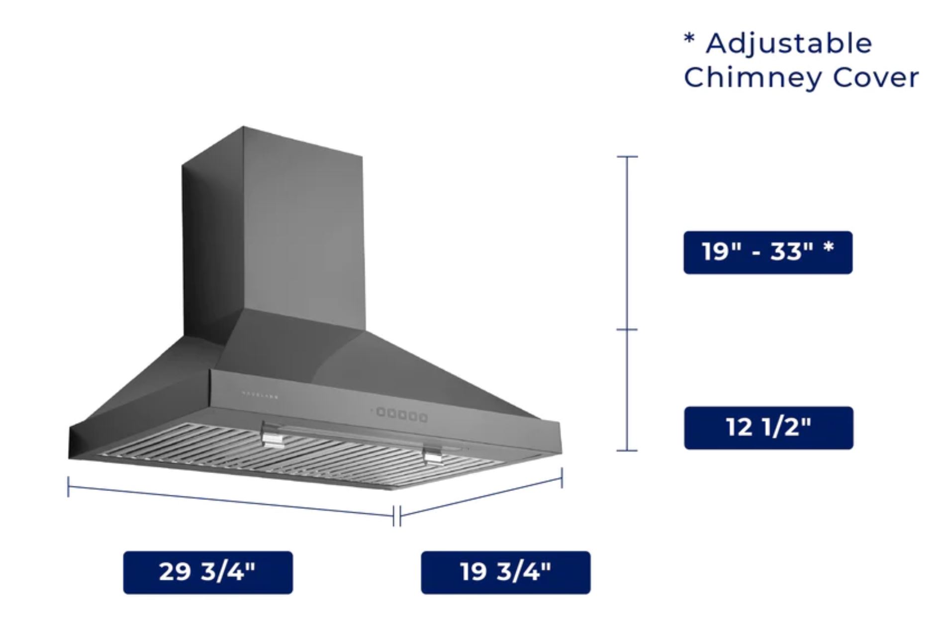 Hauslane WM-590BSS-30 Convertible Wall Mount Range Hood 30 Inch Black Stainless