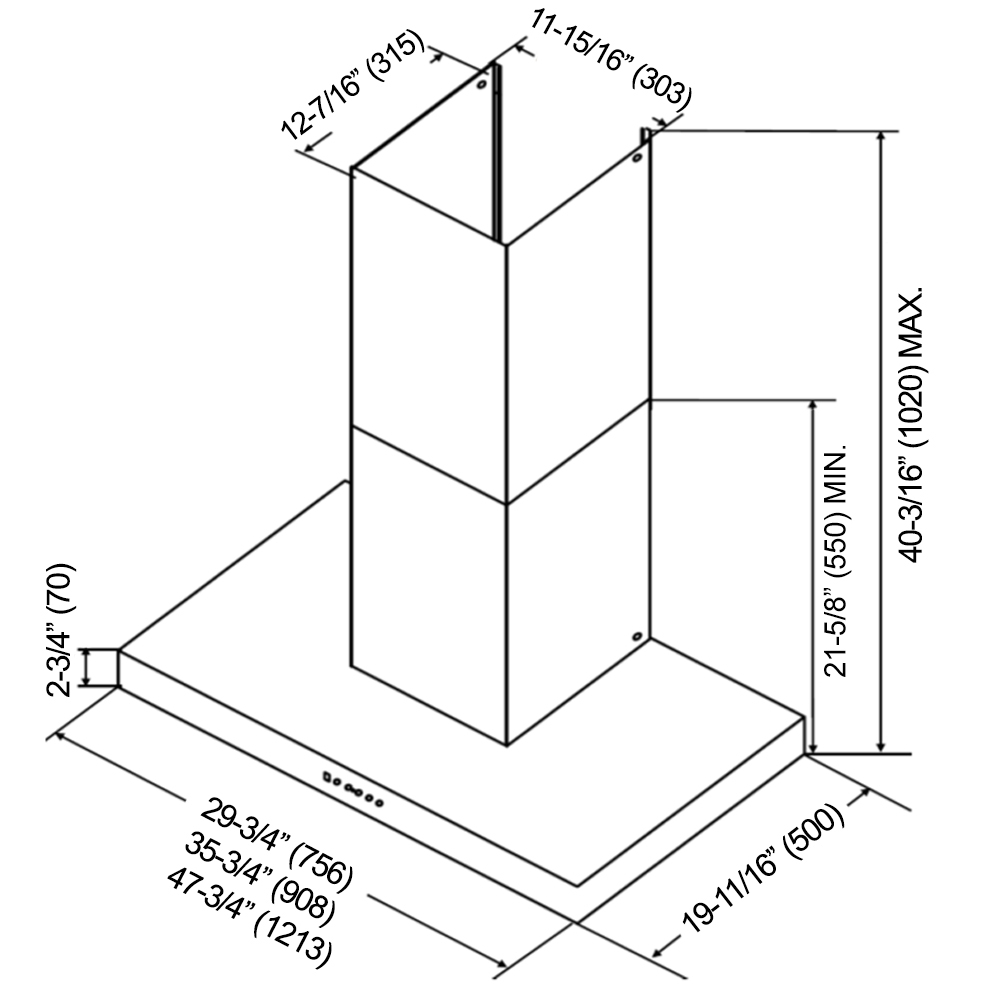• Dimensions (inches) 47-3/4” x 19-11/16” x 40 3/16″ H