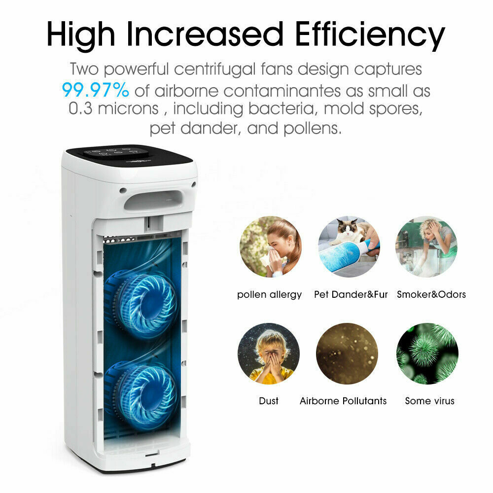 - Strong Particle Removal–Removes Over 99.9% of Particle Pollutants, Dust, Dirt, Pet Hair, Dander, Mold, etc.)