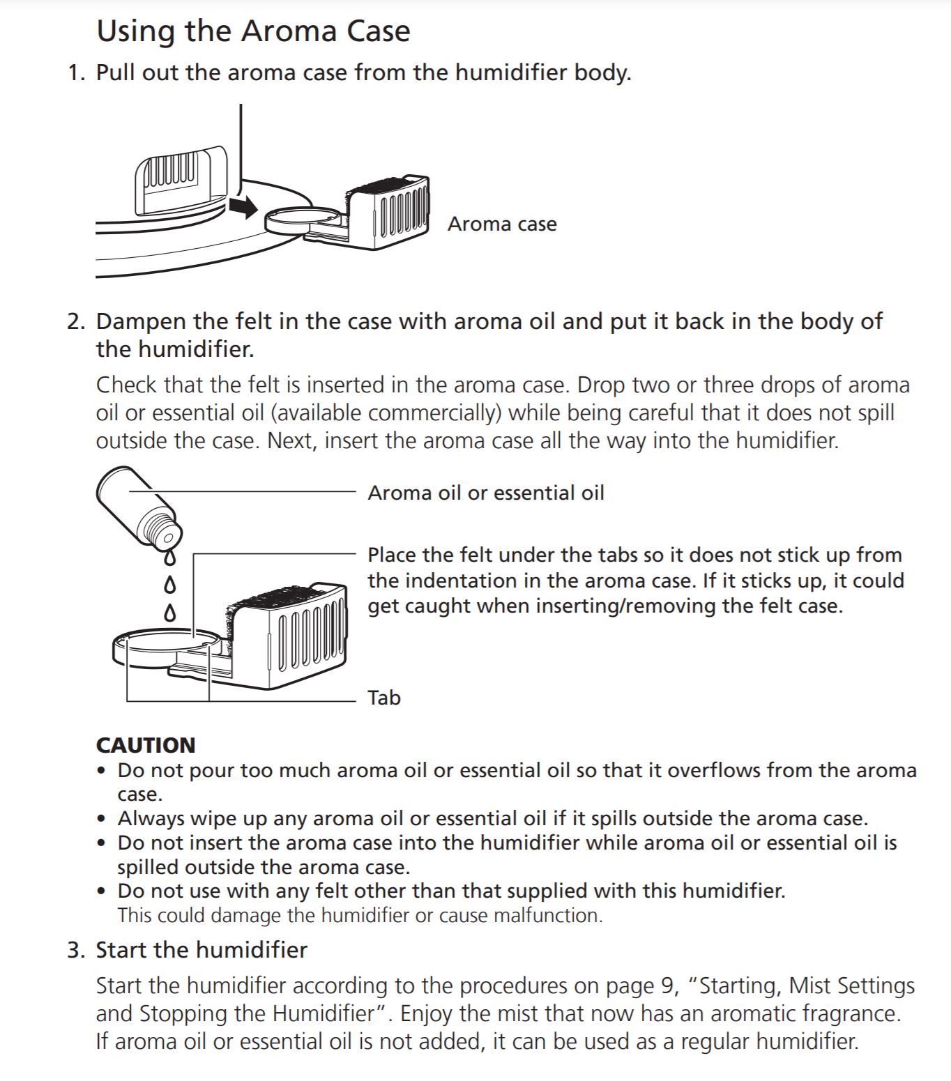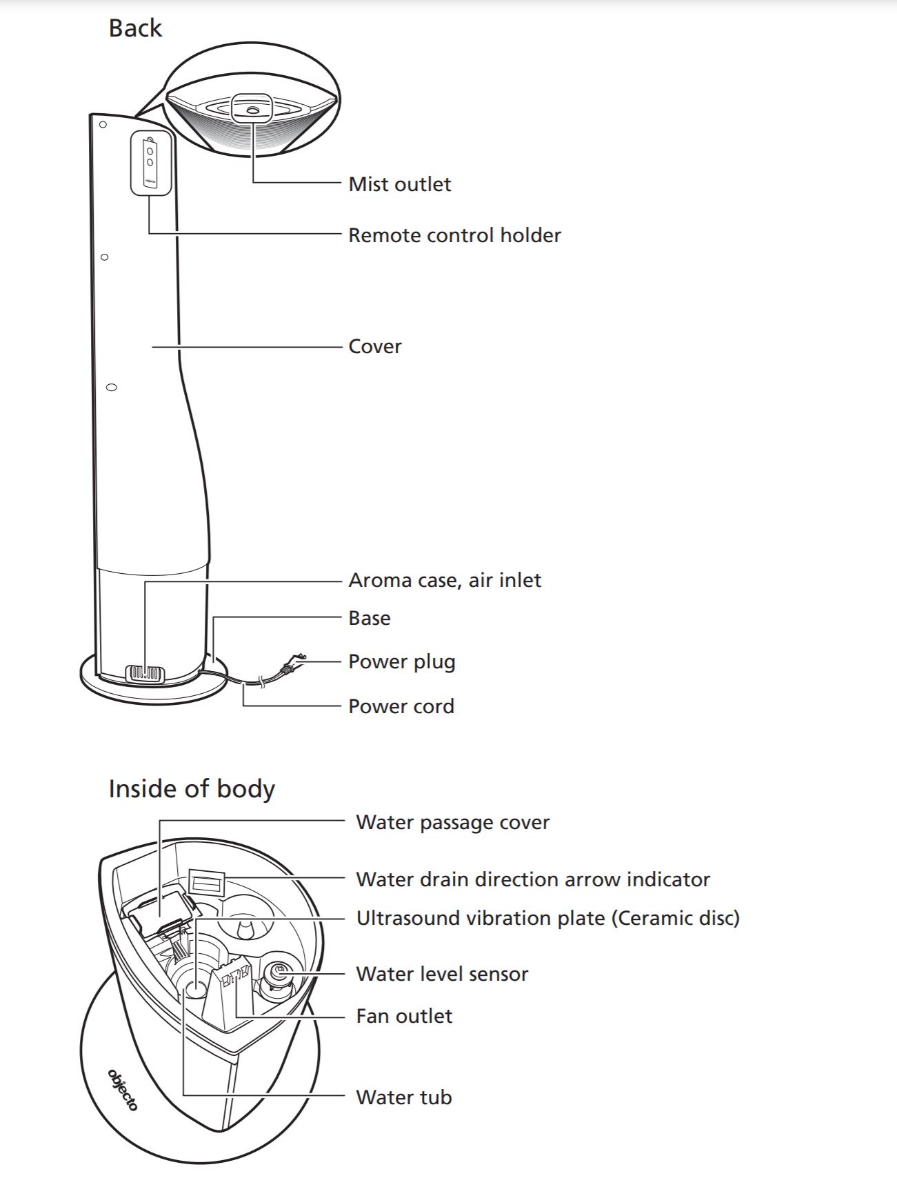 - Odor Removal: Add a few drops of aroma or essential oil to the aroma case on the bottom of the tower.