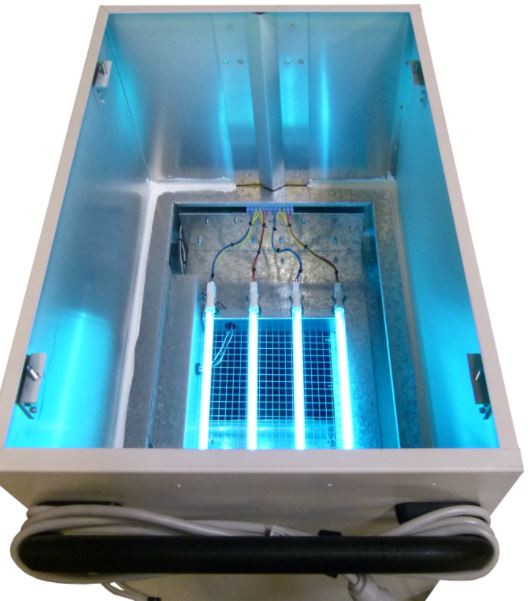 - Quad (4) Germicidal UV-C lights radiate on HEPA filter for mold, bacteria, virus destruction