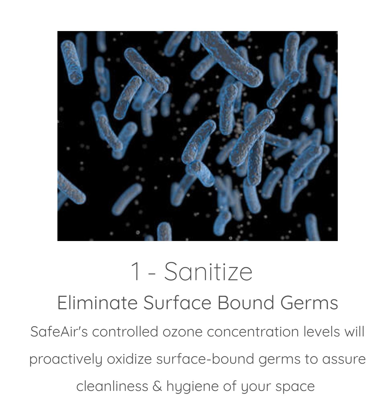 - Destroys Bacteria, Viruses and other Germs in the Air and on Surfaces with Antimicrobial Activated Oxygen Technology