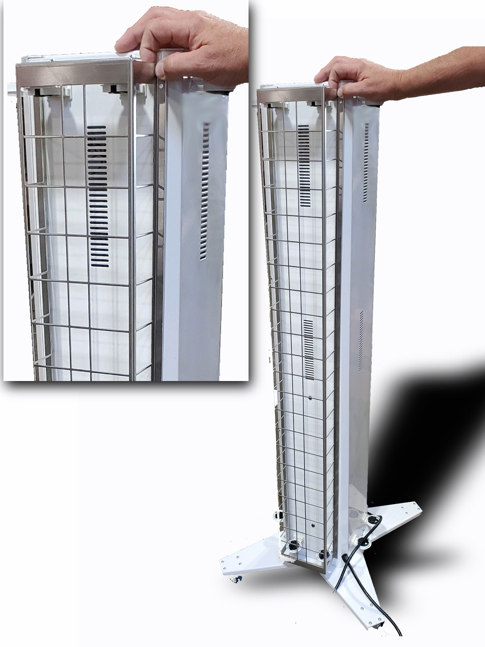 We are proud to offer our affordable top-rated germicidal ultraviolet UV-C lamp room sanitizer–the Sterilaser™ Deluxe! Over 99% of all harmful bacteria, fungi, germs and viruses (including Influenza and COVID-19) are destroyed in minutes with this filterless antiviral, antimicrobial and antibacterial air and surface cleaner! Easy to use and rugged construction makes the Sterilaser™ UV Light Air Purification unit perfect for gyms, yoga studios, health care facilities, classrooms, locker rooms, bathrooms and more!